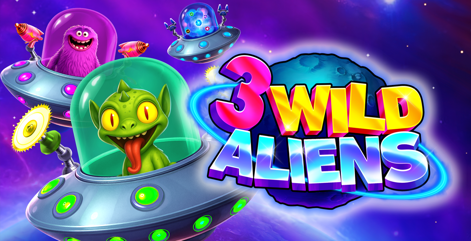 Blast off into cosmic chaos with 3 Wild Aliens, a vibrant slot from 1x2 Network. Set on a 5×3 grid with 25 paylines, this interstellar adventure features three quirky aliens—Stanley, Goober, and The Enigma—each with unique powers. Collect colored coins to trigger the Extraterrestrial Hold & Win feature, awarding respins and galactic bonuses. Stanley upgrades jackpots, Goober adds multipliers, and The Enigma collects coin values for massive wins. Land three scatters to activate Free Spins, where all Wilds become 2X Wilds. With cartoon-style visuals and dynamic features, 3 Wild Aliens delivers a fun, fast-paced journey through space.