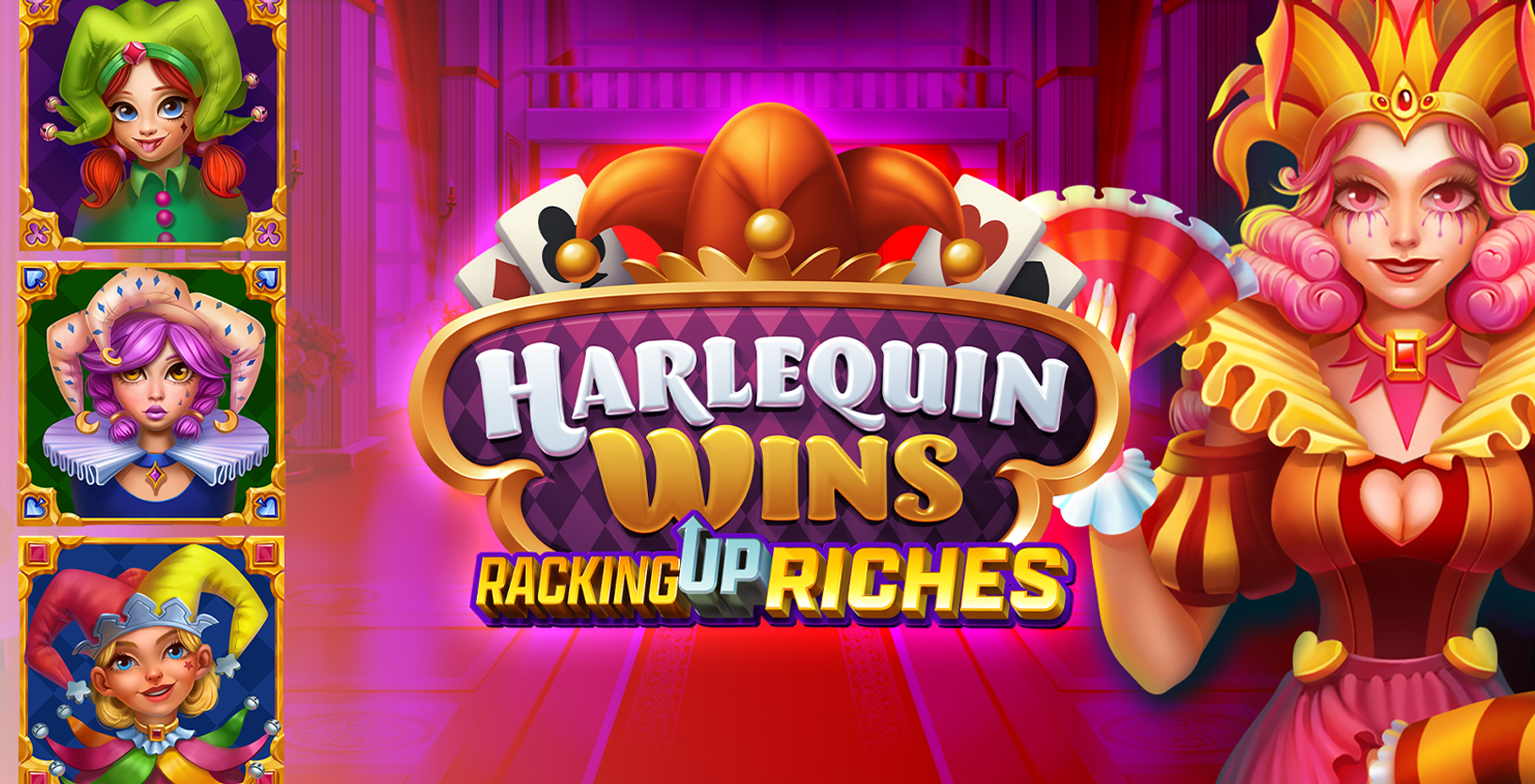 Harlequin Wins by High5 Games transports players to a vibrant medieval castle where jesters entertain with colorful visuals and engaging gameplay. This 5x3 slot features cascading reels that can expand up to 8x5, with the standout Racking Up Riches feature. This bonus mode activates when 3 or more wild symbols land, removing low-value symbols and triggering new symbol drops, potentially multiplying payouts. With its unique scatter-based mechanics and captivating theme, Harlequin Wins offers a playful yet strategic experience, enhanced by expanding reels and cascading wins