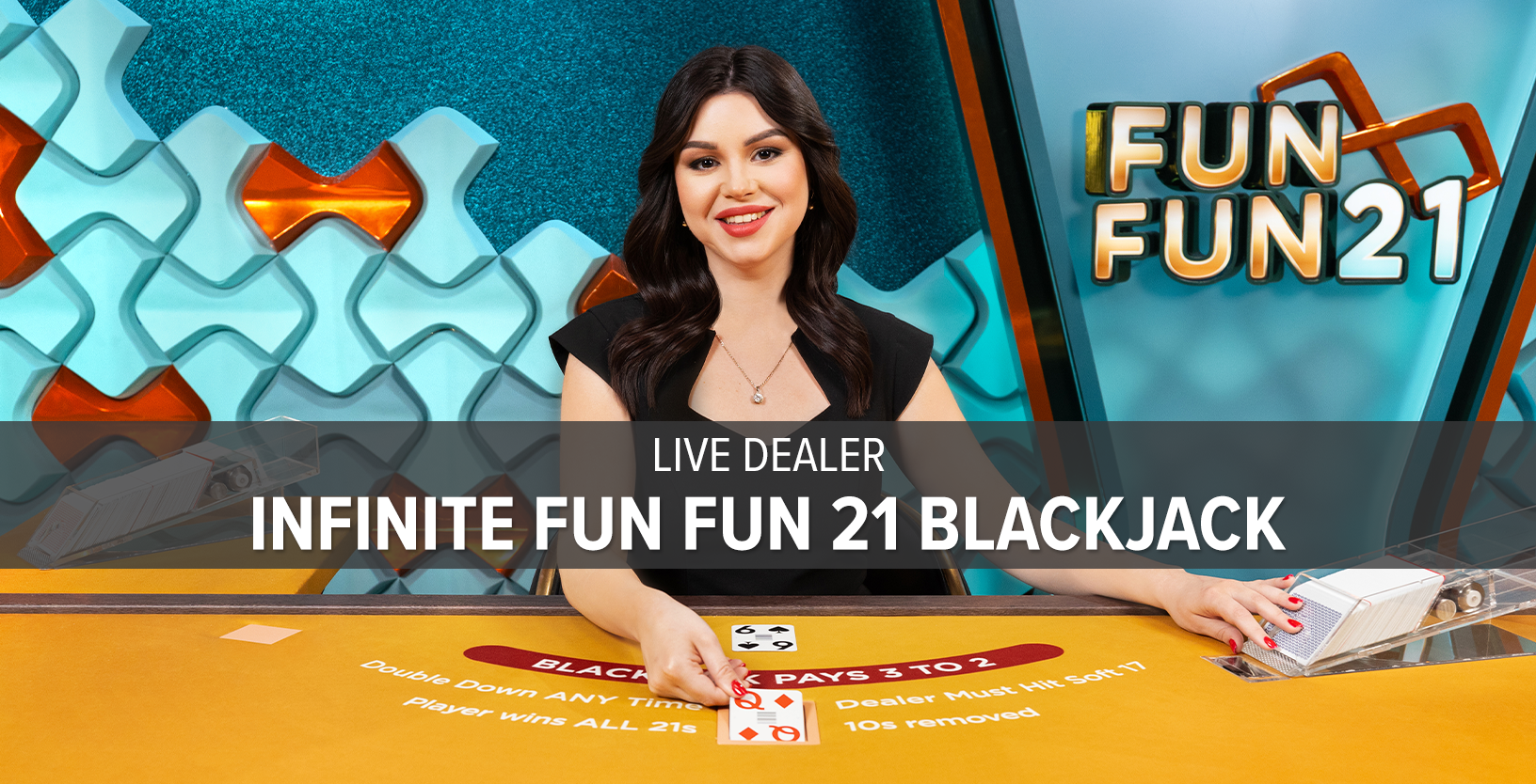 Live Dealer Infinite Fun Fun 21 Blackjack by Evolution is a dynamic twist on classic blackjack, streamed live with unlimited player capacity. This innovative variant removes all 10s from the deck and introduces exciting features like Bonus 21 and Super Bonus 21payouts—offering up to 50:1 for special hands like triple suited 7s. Players can Double Down at any time, even after hitting or splitting, and a 21 always beats the dealer—even if the dealer also has 21. With four optional side bets and immersive HD streaming, this game delivers fast-paced, high-reward blackjack action with a fun, strategic edge.
